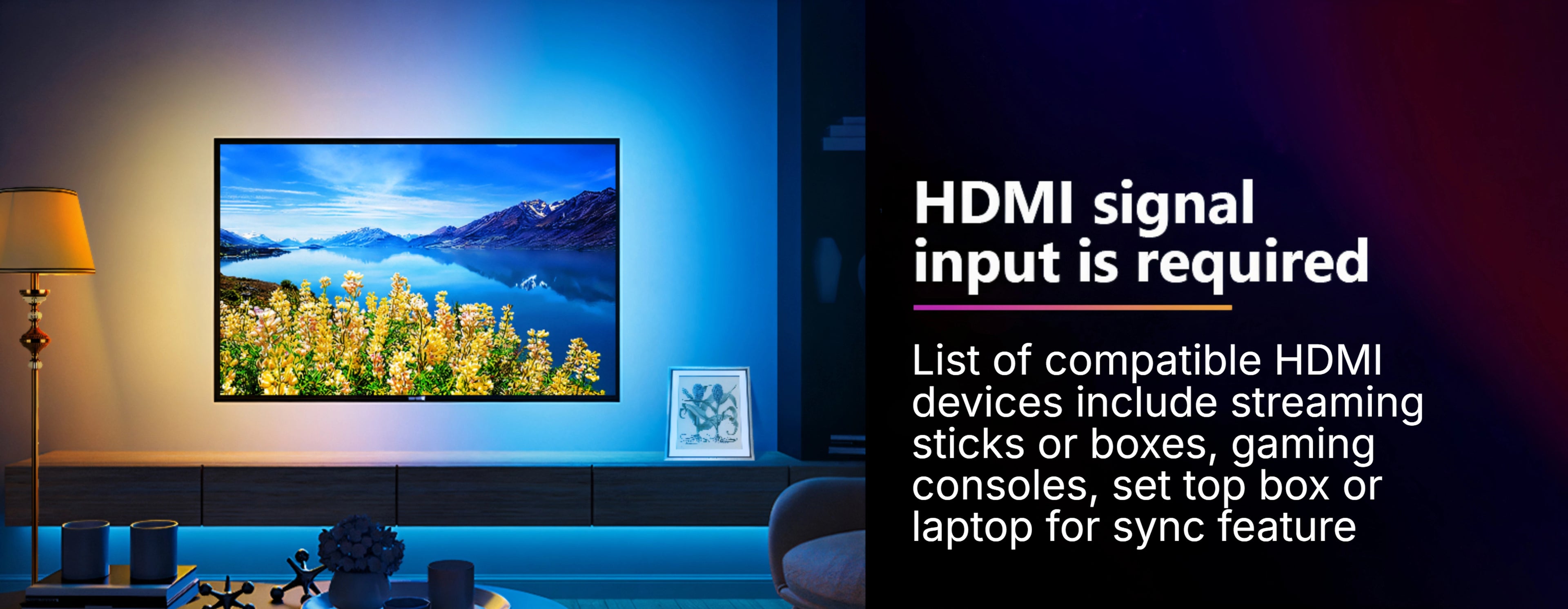 No, it cannot work directly with smart tv or android tv built in apps. You need an external HDMI input. List of compatible HDMI input devices are streaming devices like Fire tv stick or apple tv, gaming consoles like PS4, set top boxes, laptops etc.